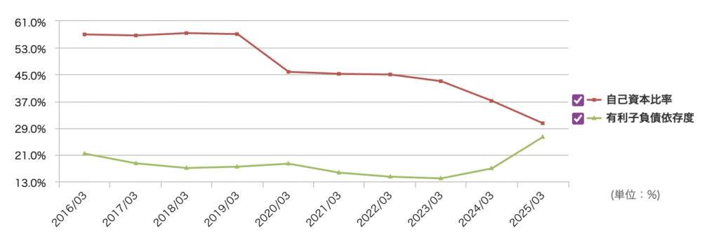 自己資本比率が低下中。